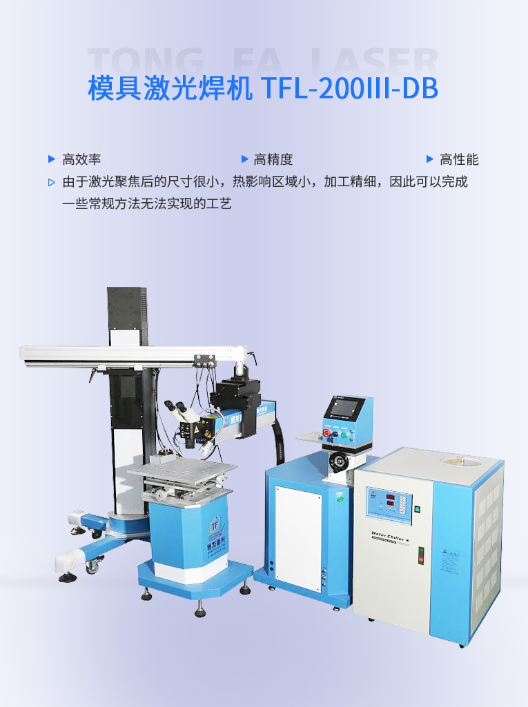 TFL-200Ⅲ-DB型模具激光焊機是通發激光公司在TFL-180Ⅲ的基礎進行了改良,采用通發自主研發的二代精密單燈電源為燈泵浦驅動電源,操作更方便。主機具備激光頭手搖升降與工作臺按鈕電動升降實現焊接不同厚度模具的激光焊加工。本款機型更適用于各類高精密注塑模具激光補焊,精密塑膠模具零件激光修補,塑膠模具鈹銅零件激光燒焊;可對模具使用過程中出現的磨損進行激光修復;對機械加工失誤、電火花加工失誤,模具減膠設計變更等需要對模具修改,起到關鍵的作用,可彌補應加工失誤造成的巨大損失。