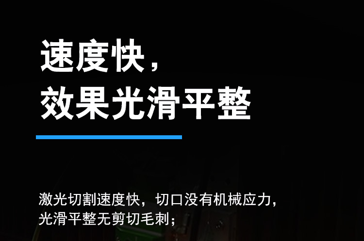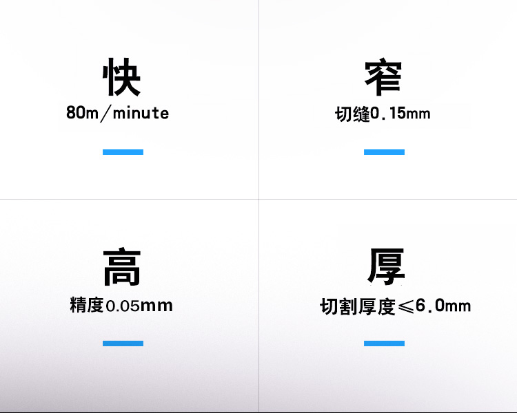 適用范圍廣,可加工銅、鋁、不銹鋼、鐵、pcb板、磁性材料等多鐘材料。幅面大小可選,長(zhǎng)度可根據(jù)用戶加工需求定制。切割速度快,效果光滑平整,切口沒(méi)有機(jī)械應(yīng)力,光滑平整無(wú)剪切毛刺。