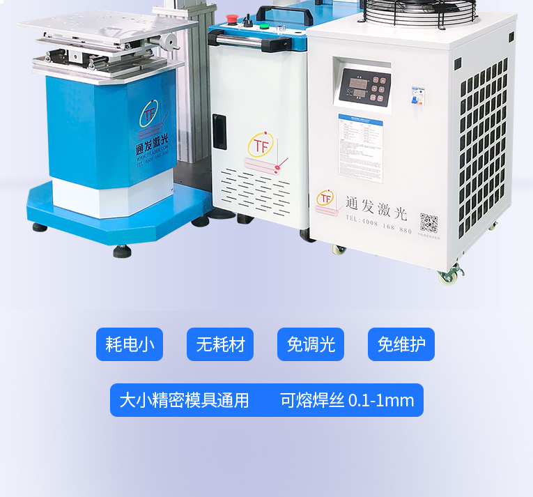 1、采用光纖激光器,反射率高,能量強(qiáng),免維護(hù),免調(diào)光,功耗少,相比傳統(tǒng) 模具焊來說,體積小,安全,穩(wěn)定性好超長使用壽命。