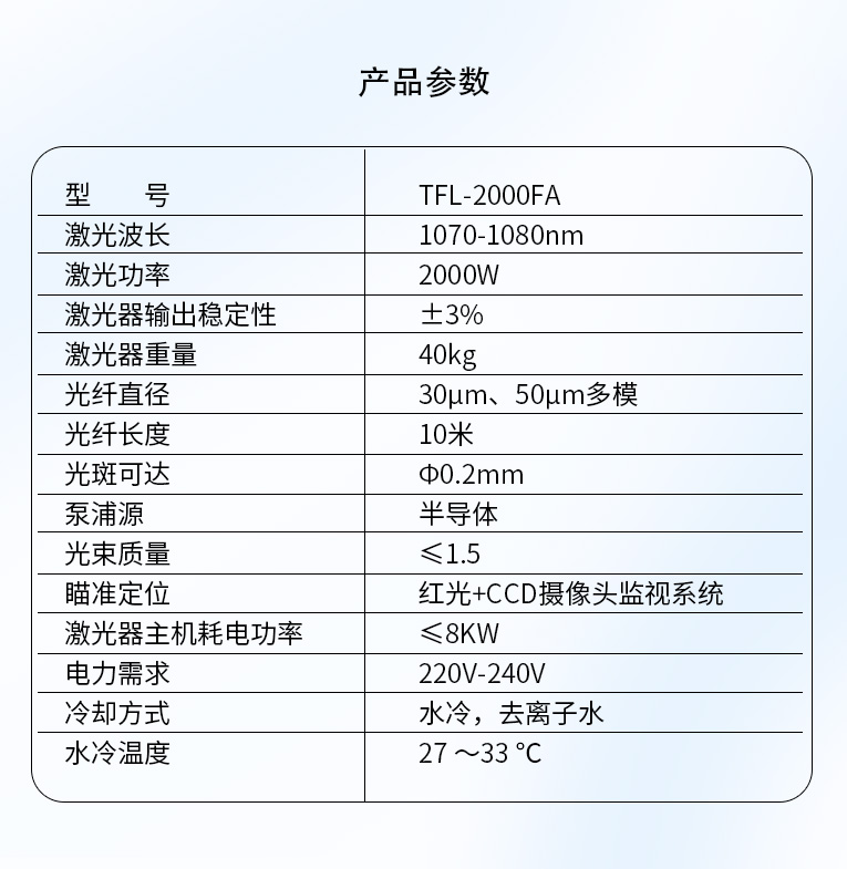 • TFL-2000FA光纖激光器焊接機